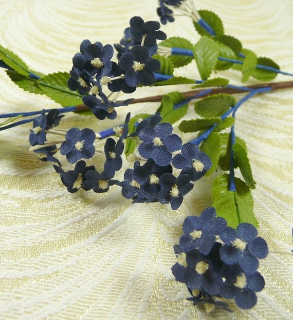 #Vintage Forget Me Nots Spray of Navy Blue with Leaves by APinkSwan, #forget me not cones, #2018 Gift Guide – FOR YOUR TREE ForgetMeNots Daily Discoveries on Etsy.
